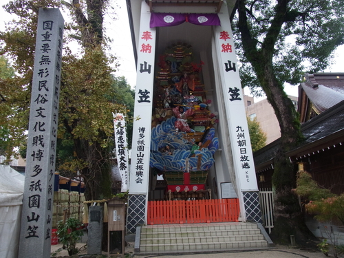 博多祇園山笠で有名で、福岡県に留まらず、本邦屈指の祭り。中世以来行われ、オッショイの掛け声と共に山笠を担ぐさまは勇壮で知られる。先の警固神社と同じく訪れてみたかった神社。