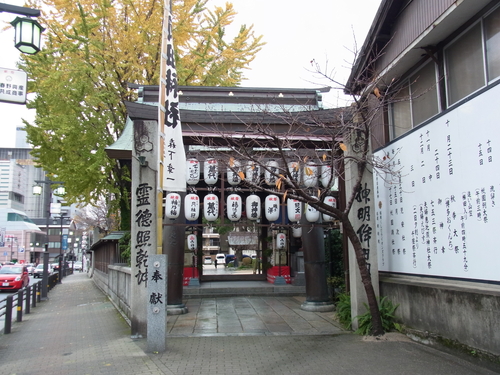 福岡県福岡市博多区上川端町に鎮座。川端商店街に隣接し、南側には博多キャナルシティという巨大商業施設がある博多繁華街の中心地。